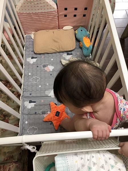 這點也很重要,不然寶寶睡覺很愛翻來翻去,早上起床墊子真的都不知道歪斜到哪裡去了....