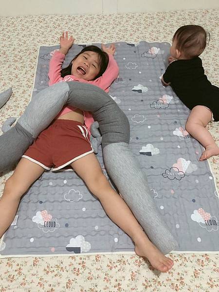 這樣就能讓兩個女兒可以一起享受這份涼感了~(霏霏睡覺也超會流汗)