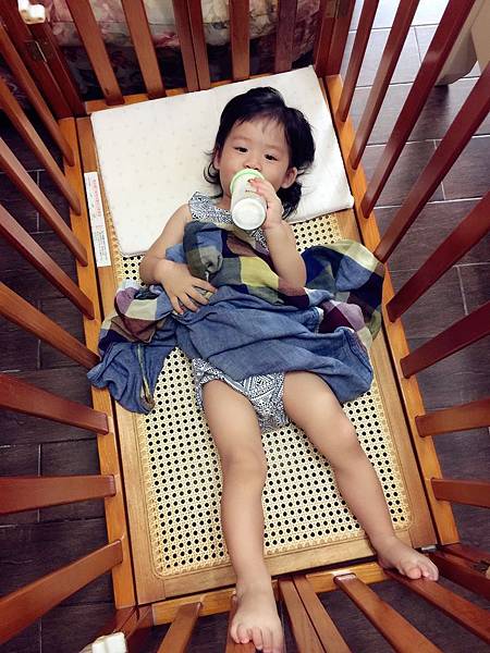 不得不說這個傳統嬰兒床,在夏天真的很好用!什麼都不用鋪,讓孩子直接躺上去睡,