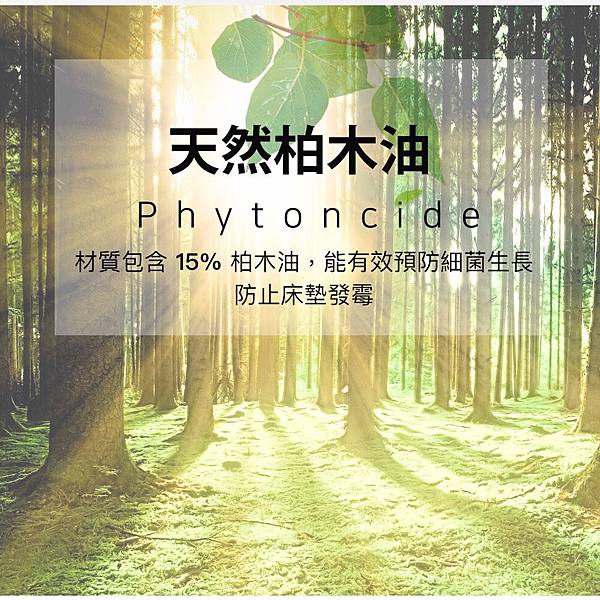 涼感蒟蒻床墊裡頭還有一個很重要的東西,就是柏木油,這個能防止細菌生長、防止床墊發霉的成分。